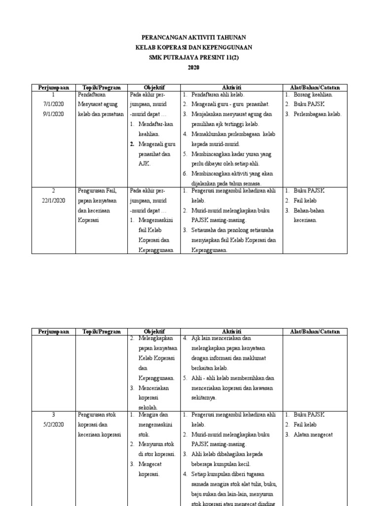 Perancangan Aktiviti Tahunan Kelab Pengguna Sekolah Pdf